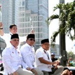 JAKARTA — Nomor urut satu (1) yang didapatkan pasangan capres dan cawapres Prabowo Subianto-Hatta Rajasa ditanggapi gegap gempita oleh pendukung pasangan ini. Sesaat sesudah Prabowo menarik kertas putih bertuliskan ...